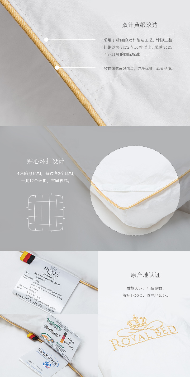 德国原产OBB RoyalbedBed加拿大100%鹅绒Climasphere冬夏两用被,利用独特的温度调节技术,只需要简单的翻转一下被子,我就就可以实现“冬暖夏凉”目的。