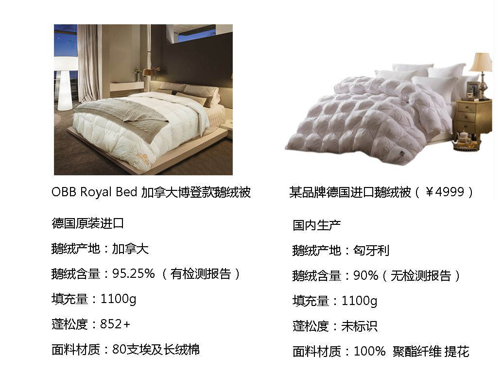 同比一下市场上的鹅绒被品,价格比OBB ROYAL BED高、品质却不如。